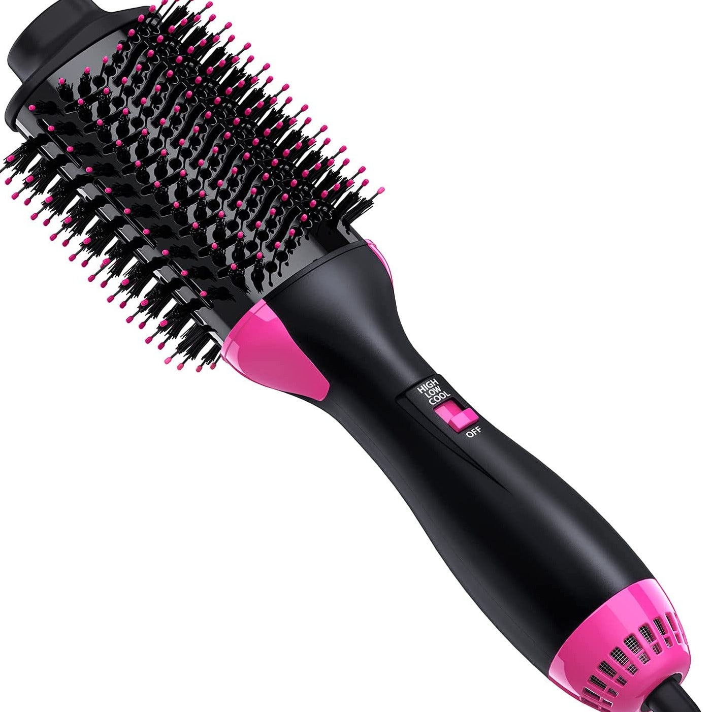 1000 Watt power provides just the right heat. Unlike conventional hair dryers, this volumizer can be placed closer to the scalp for lift. 3 Heat Setting for Styling Flexibility. 120V (Not for 240V). Oval Brush Design. Unique Shape for smoothing the hair, while round edges create volume. Mixed Bristles. Brush is designed with Nylon Pin & Tufted Bristles for easy detangling. While the shaft is about 2", the bristle-tip to bristle-tip width is 4" at its widest part. The tool is about 18" long. This is important to see if your hair is long enough for this tool